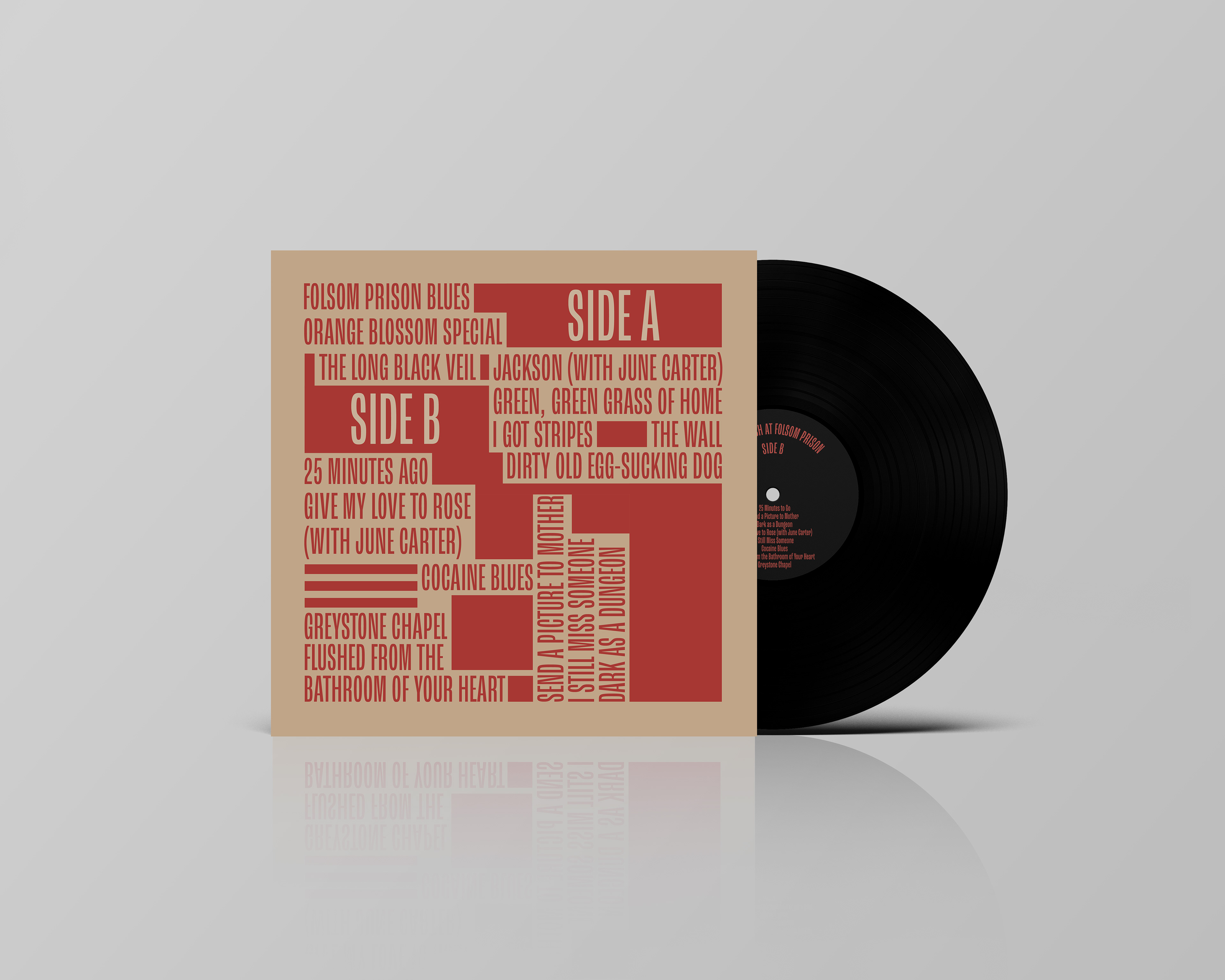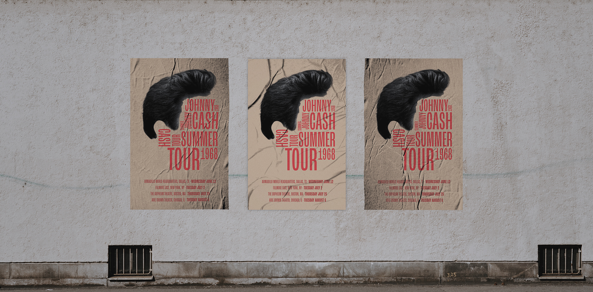 For my Type 2 class project, we were tasked with crafting a Johnny Cash album set with a poster, drawing inspiration from the Dada style and presenting mockups.