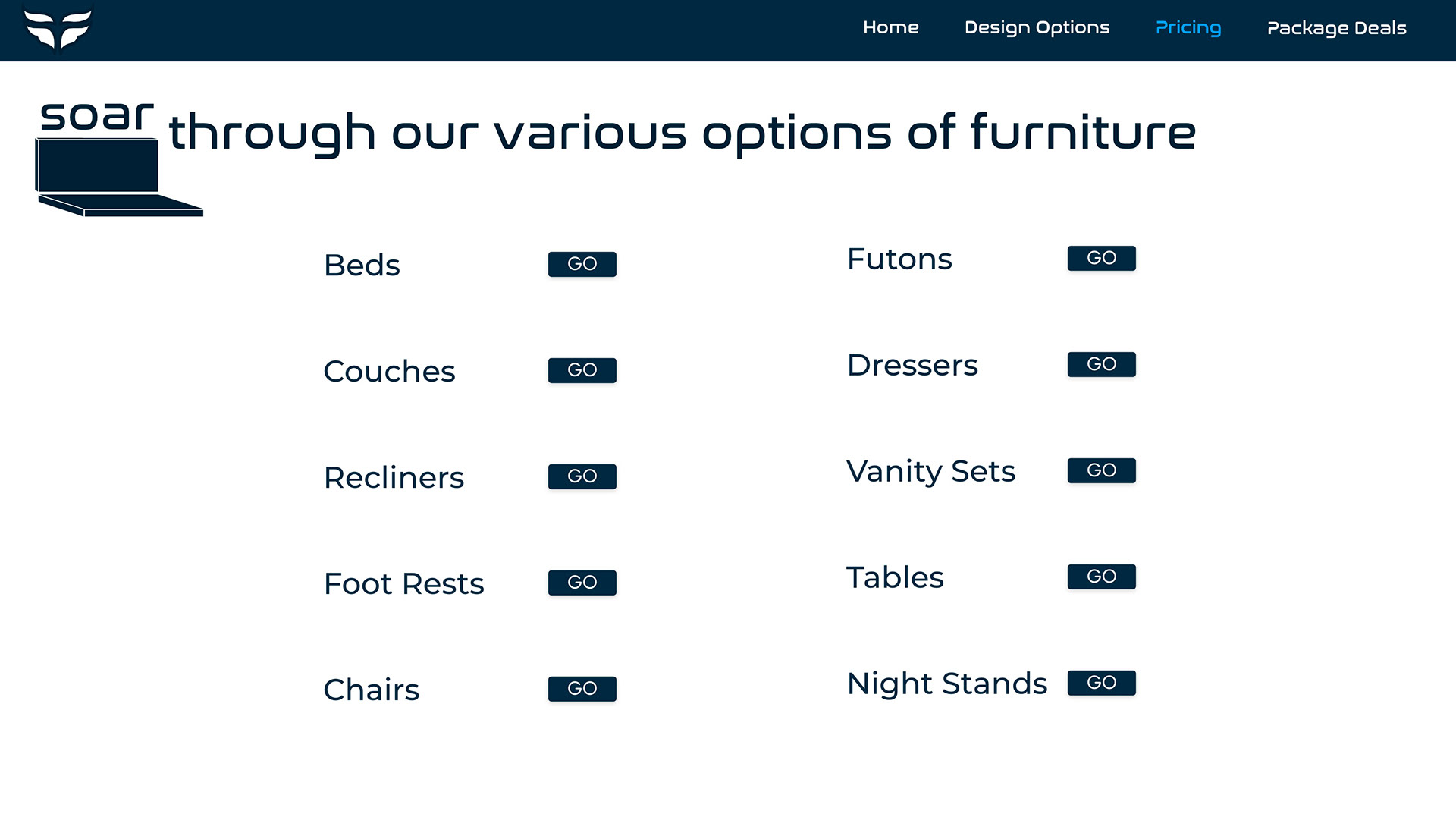 All available pages in the mockup website